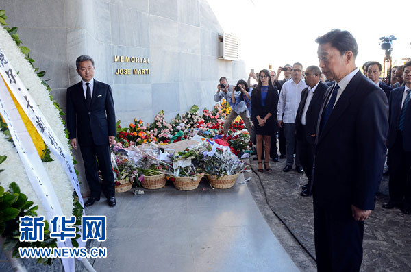 當(dāng)天上午,李源潮前往何塞·馬蒂紀(jì)念館,代習(xí)近平主席向菲德爾·卡斯特羅敬獻(xiàn)花圈,并向在場(chǎng)的菲德爾·卡斯特羅的家屬轉(zhuǎn)達(dá)習(xí)近平主席的深切慰問。