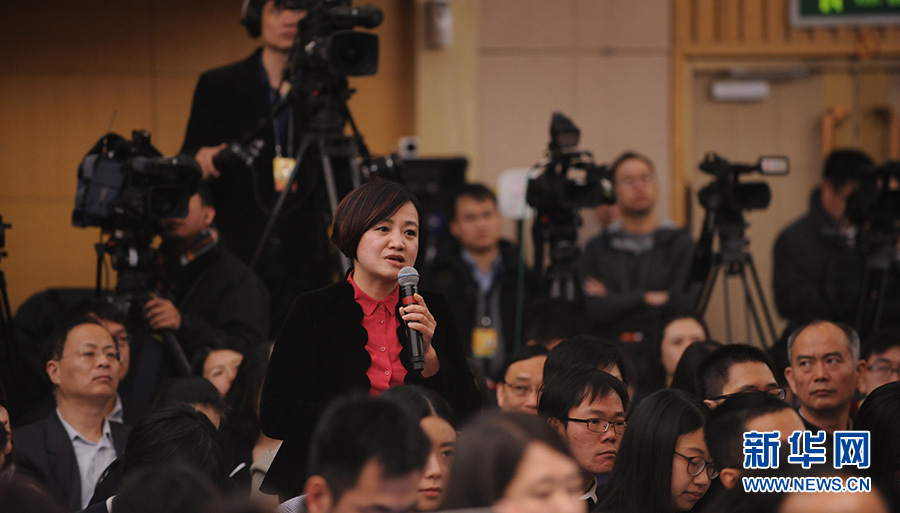 ?????十二屆全國(guó)人大四次會(huì)議新聞中心于3月12日(星期六)14時(shí)30分在梅地亞中心多功能廳舉行記者會(huì),邀請(qǐng)國(guó)務(wù)院國(guó)有資產(chǎn)監(jiān)督管理委員會(huì)主任肖亞慶、副主任張喜武、副主任黃丹華和副秘書(shū)長(zhǎng)、新聞發(fā)言人彭華崗就“國(guó)企改革”的相關(guān)問(wèn)題回答中外記者的提問(wèn)。圖為中央電視臺(tái)記者提問(wèn)。新華網(wǎng)/中國(guó)政府網(wǎng) 陳杰 攝