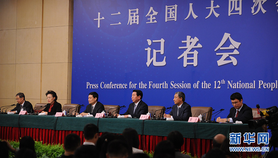 ?????十二屆全國人大四次會議新聞中心于3月12日(星期六)14時30分在梅地亞中心多功能廳舉行記者會,邀請國務院國有資產(chǎn)監(jiān)督管理委員會主任肖亞慶、副主任張喜武、副主任黃丹華和副秘書長、新聞發(fā)言人彭華崗就“國企改革”的相關問題回答中外記者的提問。圖為肖亞慶回答記者提問。新華網(wǎng)/中國政府網(wǎng) 陳杰 攝