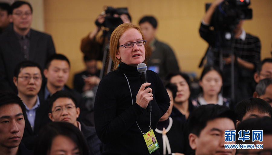 ?????十二屆全國人大四次會議新聞中心于3月12日(星期六)14時(shí)30分在梅地亞中心多功能廳舉行記者會,邀請國務(wù)院國有資產(chǎn)監(jiān)督管理委員會主任肖亞慶、副主任張喜武、副主任黃丹華和副秘書長、新聞發(fā)言人彭華崗就“國企改革”的相關(guān)問題回答中外記者的提問。圖為金融時(shí)報(bào)記者提問。新華網(wǎng)/中國政府網(wǎng) 陳杰 攝
