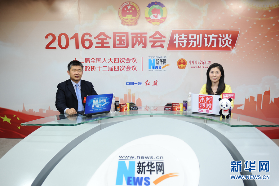 ??? 2016年3月12日,全國(guó)政協(xié)委員,內(nèi)蒙古蒙草公司董事長(zhǎng)兼總經(jīng)理王召明做客新華網(wǎng)兩會(huì)訪談。圖為王召明在訪談現(xiàn)場(chǎng)。新華網(wǎng) 賈海元 攝