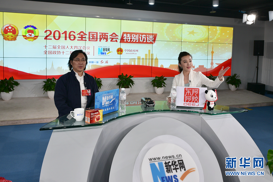 3月13日,全國(guó)人大代表、中國(guó)文聯(lián)全委、中國(guó)音樂(lè)家協(xié)會(huì)副主席,上海音樂(lè)家協(xié)會(huì)副主席、上海音樂(lè)學(xué)院副院長(zhǎng)廖昌永做客新華網(wǎng)2016全國(guó)兩會(huì)特別訪談,與新華網(wǎng)網(wǎng)友在線交流。圖為廖昌永在訪談現(xiàn)場(chǎng)。新華網(wǎng) 郭小天 攝
