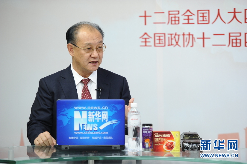 2016年3月13日,全國(guó)政協(xié)委員,中國(guó)中醫(yī)科學(xué)院廣安門醫(yī)院院長(zhǎng)王階做客新華網(wǎng)兩會(huì)訪談直播間。圖為王階在訪談現(xiàn)場(chǎng)。新華網(wǎng) 盧志佳 攝