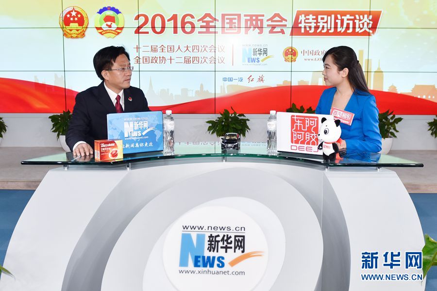 ????2016年3月13日,最高人民檢察院辦公廳主任、新聞辦主任王松苗做客新華網(wǎng)兩會訪談直播間。圖為王松苗回答主持人提問。新華網(wǎng) 付宇鵬 攝