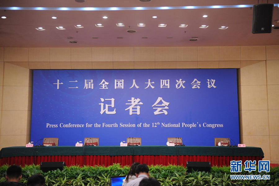 十二屆全國人大四次會(huì)議新聞中心于3月14日(星期一)10時(shí)在梅地亞中心多功能廳舉行記者會(huì),邀請(qǐng)交通運(yùn)輸部部長楊傳堂、交通運(yùn)輸部運(yùn)輸服務(wù)司司長劉小明、北京交通發(fā)展研究中心主任郭繼孚就“深化出租汽車改革與發(fā)展”的相關(guān)問題回答中外記者的提問。圖為記者會(huì)現(xiàn)場,記者會(huì)即將開始。新華網(wǎng)/中國政府網(wǎng) 陳杰 攝