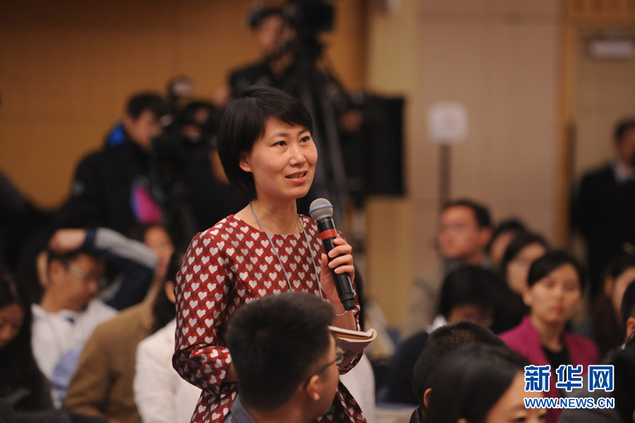 十二屆全國人大四次會議新聞中心于3月14日(星期一)10時在梅地亞中心多功能廳舉行記者會,邀請交通運輸部部長楊傳堂、交通運輸部運輸服務司司長劉小明、北京交通發(fā)展研究中心主任郭繼孚就“深化出租汽車改革與發(fā)展”的相關問題回答中外記者的提問。圖為中央人民廣播電臺、央廣網(wǎng)記者提問。新華網(wǎng)/中國政府網(wǎng) 陳杰 攝