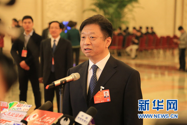 3月16日上午,第十二屆全國人民代表大會第四次會議在人民大會堂舉行閉幕會,表決關(guān)于政府工作報告、關(guān)于國民經(jīng)濟和社會發(fā)展第十三個五年規(guī)劃綱要、關(guān)于2015年國民經(jīng)濟和社會發(fā)展計劃執(zhí)行情況與2016年國民經(jīng)濟和社會發(fā)展計劃等7個決議草案。圖為國家海洋局局長王宏在“部長通道”接受采訪。新華網(wǎng)/中國政府網(wǎng) 李何銘 攝