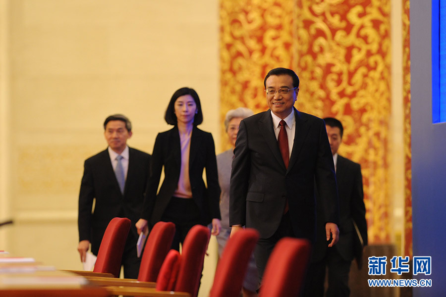 3月16日上午,國務(wù)院總理李克強在人民大會堂三樓金色大廳會見采訪十二屆全國人大四次會議的中外記者并回答記者提出的問題。圖為李克強步入金色大廳。 新華網(wǎng)/中國政府網(wǎng) 陳杰攝