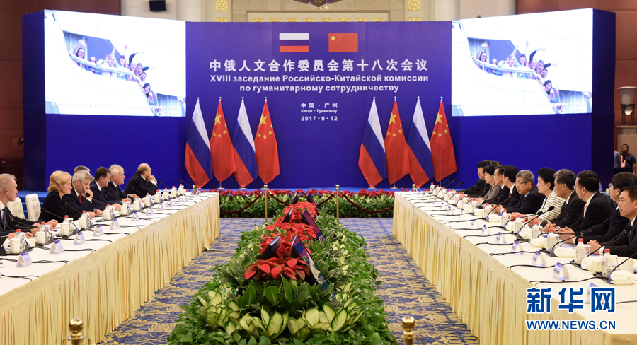 9月12日,中國(guó)國(guó)務(wù)院副總理、中俄人文合作委員會(huì)中方主席劉延?xùn)|在廣州與俄羅斯副總理、委員會(huì)俄方主席戈洛杰茨共同主持召開中俄人文合作委員會(huì)第十八次會(huì)議。新華社記者 盧漢欣 攝
