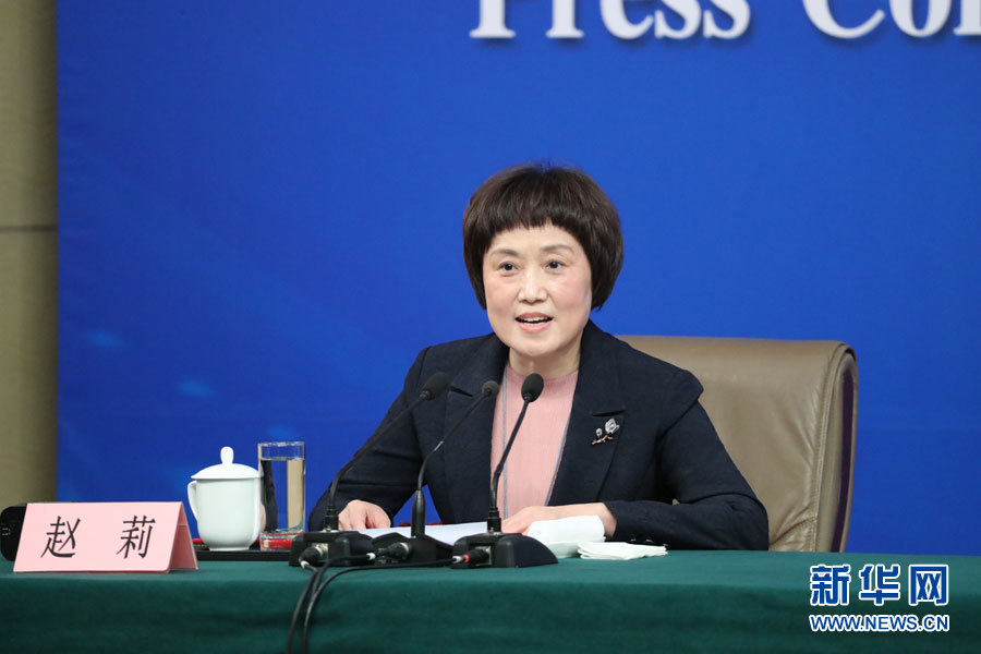 3月10日,十二屆全國(guó)人大五次會(huì)議新聞中心舉行記者會(huì),邀請(qǐng)國(guó)家工商行政管理總局局長(zhǎng)張茅就“深化商事制度改革”的相關(guān)問題回答中外記者的提問。圖為記者會(huì)主持人趙莉。新華網(wǎng)/中國(guó)政府網(wǎng)?孫韜 攝