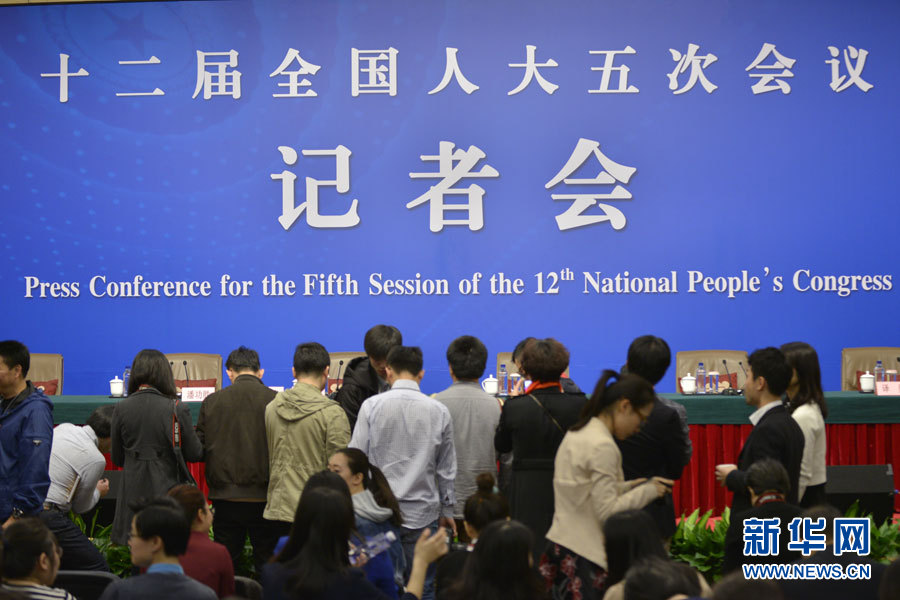 3月10日,十二屆全國人大五次會議新聞中心舉行記者會,邀請中國人民銀行行長周小川、副行長易綱、副行長兼國家外匯管理局局長潘功勝、副行長范一飛就“金融改革與發(fā)展”的相關(guān)問題回答中外記者的提問。圖為記者會現(xiàn)場。新華網(wǎng)/中國政府網(wǎng) 王健 攝