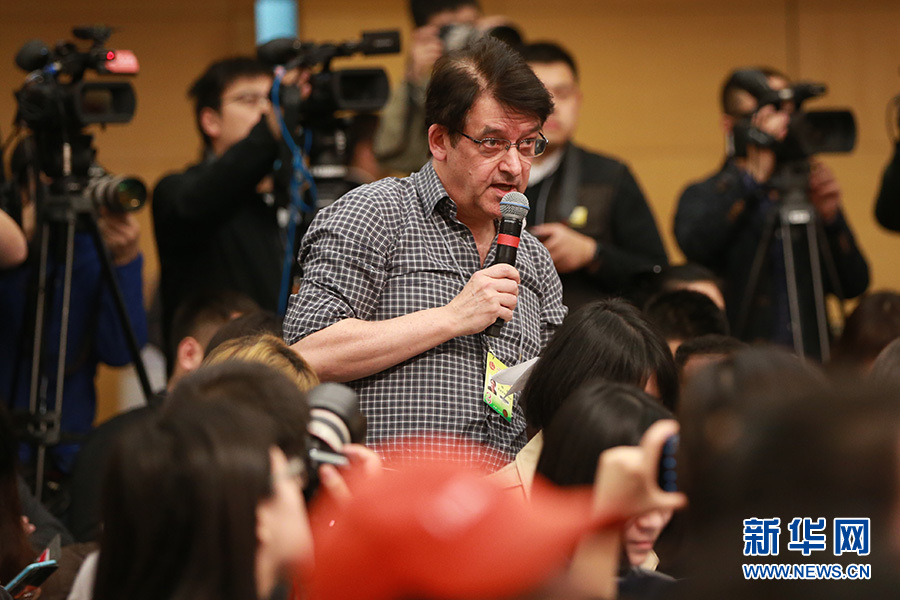 3月11日,十二屆全國人大五次會議新聞中心舉行記者會,主題是“改革開放調(diào)結(jié)構(gòu) 創(chuàng)新驅(qū)動促發(fā)展”,商務(wù)部部長鐘山、副部長王受文、副部長錢克明出席并回答中外記者的提問。圖為彭博新聞社記者提問。 新華網(wǎng)/中國政府網(wǎng) 王健 攝