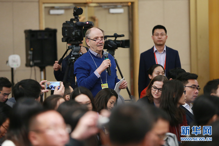 3月11日,十二屆全國人大五次會議新聞中心舉行記者會,邀請工業(yè)和信息化部部長苗圩、副部長辛國斌和總工程師、新聞發(fā)言人張峰就“推進(jìn)實(shí)施‘中國制造2025’”的相關(guān)問題回答中外記者的提問。圖為德國世界報記者提問。新華網(wǎng)/中國政府網(wǎng) 傅義洲 攝