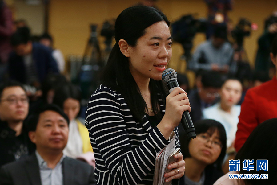 3月11日,十二屆全國(guó)人大五次會(huì)議新聞中心舉行記者會(huì),邀請(qǐng)工業(yè)和信息化部部長(zhǎng)苗圩、副部長(zhǎng)辛國(guó)斌和總工程師、新聞發(fā)言人張峰就“推進(jìn)實(shí)施‘中國(guó)制造2025’”的相關(guān)問(wèn)題回答中外記者的提問(wèn)。圖為香港紫荊雜志記者提問(wèn)。新華網(wǎng)/中國(guó)政府網(wǎng) 傅義洲 攝