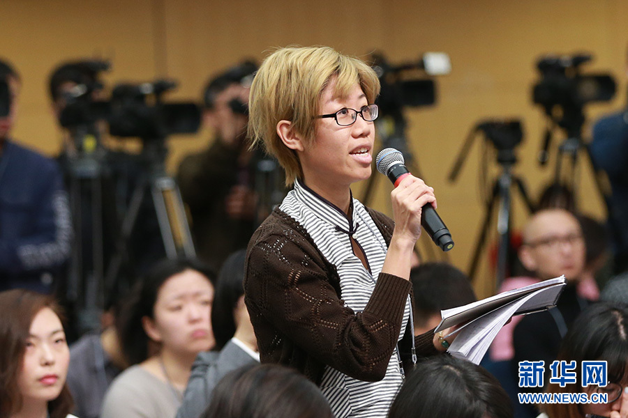 3月11日,十二屆全國人大五次會議新聞中心舉行記者會,邀請工業(yè)和信息化部部長苗圩、副部長辛國斌和總工程師、新聞發(fā)言人張峰就“推進(jìn)實(shí)施‘中國制造2025’”的相關(guān)問題回答中外記者的提問。圖為新加坡海峽時(shí)報(bào)記者提問。新華網(wǎng)/中國政府網(wǎng) 傅義洲 攝
