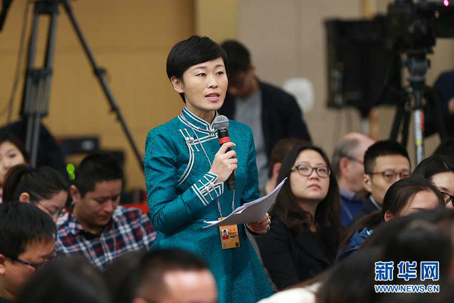 3月11日,十二屆全國人大五次會議新聞中心舉行記者會,邀請工業(yè)和信息化部部長苗圩、副部長辛國斌和總工程師、新聞發(fā)言人張峰就“推進(jìn)實(shí)施‘中國制造2025’”的相關(guān)問題回答中外記者的提問。圖為內(nèi)蒙古廣播電視臺記者提問。新華網(wǎng)/中國政府網(wǎng) 傅義洲 攝