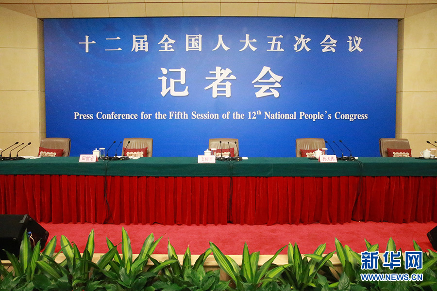 3月14日,十二屆全國人大五次會議新聞中心舉行記者會,邀請國家質(zhì)檢總局局長支樹平、副局長兼國家認(rèn)證認(rèn)可監(jiān)督管理委員會主任孫大偉、國家標(biāo)準(zhǔn)化管理委員會主任田世宏就“質(zhì)量提升”的相關(guān)問題回答中外記者的提問。圖為記者會現(xiàn)場。新華網(wǎng)/中國政府網(wǎng)?傅義洲 攝