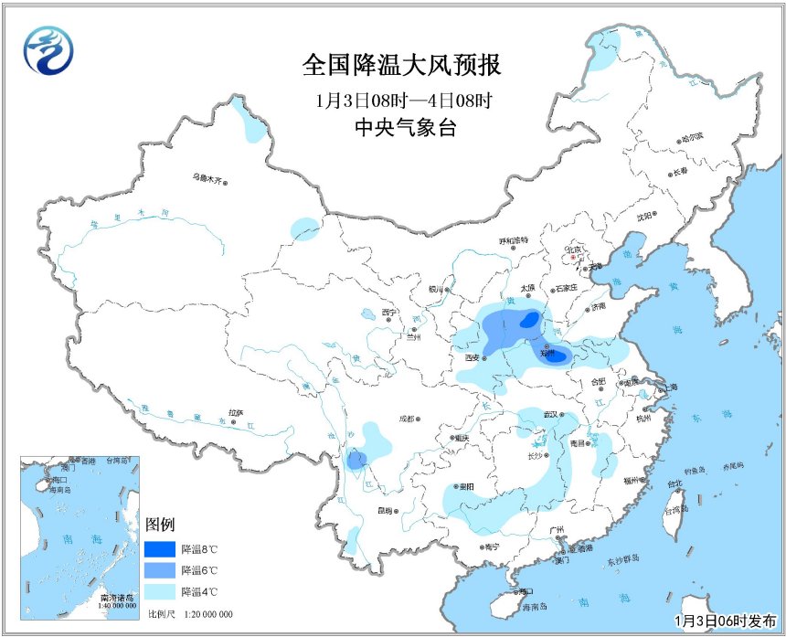 張濤:此次過(guò)程降溫幅度明顯,整個(gè)雨雪影響區(qū)域都會(huì)出現(xiàn)4~6℃的降溫,其中,陜西、河南、湖北西部、山西、甘肅東南部將降溫6~8℃,局地降溫可達(dá)10℃。湖北、河南等地還會(huì)有4~5級(jí)偏北風(fēng)。