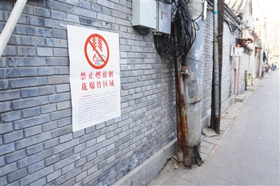 2017年1月24日,北京的胡同里張貼著禁放區(qū)域告示。圖/千龍圖像庫郝赫峰