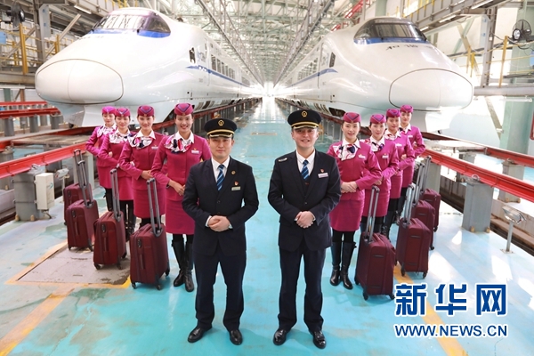 1月16日,擔任首發(fā)列車值乘工作的貴陽客運段司機和乘務(wù)員在貴陽亮相。新華社記者劉續(xù)攝