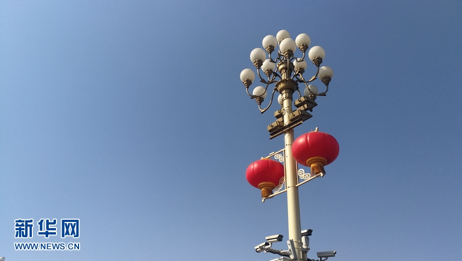 2018年2月15日,天安門廣場(chǎng)外的燈柱用紅燈籠裝飾一新,喜迎農(nóng)歷新年。紅色代表著喜慶、熱鬧、祥和,是中國(guó)人最為崇尚的吉祥之色。新年來(lái)臨,中國(guó)紅無(wú)處不在,到處都洋溢著喜氣洋洋的節(jié)日氣氛。新華網(wǎng) 張明宇攝