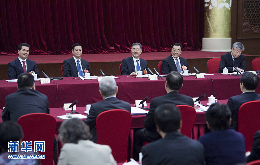 3月4日,中共中央政治局常委、中央書記處書記王滬寧看望出席全國(guó)政協(xié)十三屆一次會(huì)議的教育、新聞出版界委員并參加討論。 新華社記者 燕雁 攝