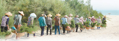 圖為陶鳳交帶領綠色娘子軍去海邊植樹。廖傳松攝