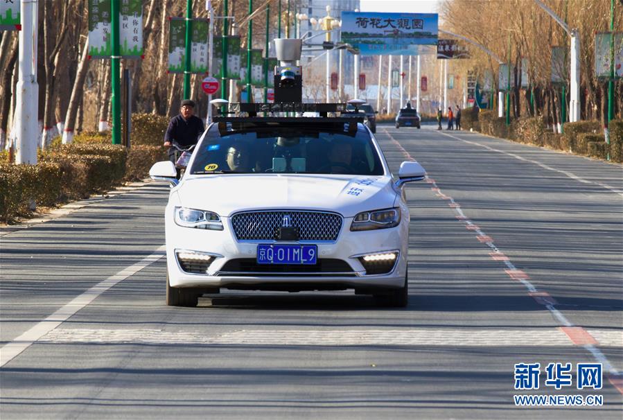 一輛百度Apollo自動(dòng)駕駛車輛在雄安新區(qū)進(jìn)行載人路測(cè)(2017年12月20日攝)。新華社記者 楊世堯 攝