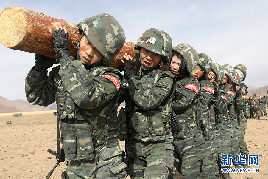 這是特戰(zhàn)隊員扛圓木進行極限體能訓(xùn)練。新華網(wǎng)發(fā) 余文彬 攝