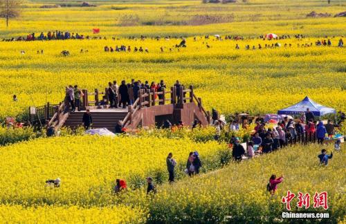 4月7日清明小長假最后一天,江蘇興化千垛景區(qū)賞花觀景的人流如潮。 湯德宏 攝