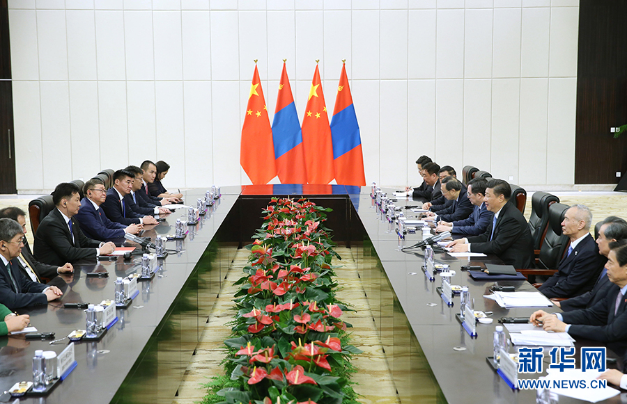習(xí)近平指出,中方始終將中蒙關(guān)系放在周邊外交重要位置。我們將推動建設(shè)人類命運共同體,繼續(xù)按照親誠惠容理念和與鄰為善、以鄰為伴的周邊外交方針,深化同蒙古國的關(guān)系。當(dāng)前,中蒙關(guān)系處在新的歷史階段。雙方要本著互信、合作、共贏原則,抓住機遇,推動中蒙全面戰(zhàn)略伙伴關(guān)系向前發(fā)展。