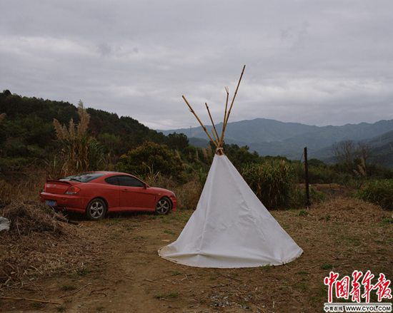 夫妻倆居住的圓頂木屋距離村子幾百米遠(yuǎn),是和朋友們一起搭建的。屋里的電氣設(shè)備一應(yīng)俱全,太陽(yáng)能發(fā)電在村子停電時(shí)仍能應(yīng)付日常消耗。屋外停著一輛二手的紅色兩座跑車,用來(lái)載人拉貨。與嶗山的“自給自足實(shí)驗(yàn)”不同,這些只有在現(xiàn)代工業(yè)社會(huì)才能量產(chǎn)的物品成了山中生活的得力工具。
