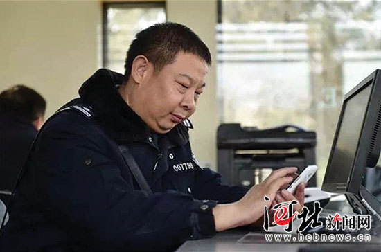 呂建江在工作中利用微博微信回復(fù)網(wǎng)友提問(wèn)。記者田明、史晟全攝影報(bào)道(資料照片由河北省公安廳新聞中心、石家莊市公安局橋西分局提供)