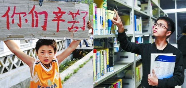 現(xiàn)場有人小聲說:“這是從災(zāi)區(qū)走出來的孩子?!?/p>