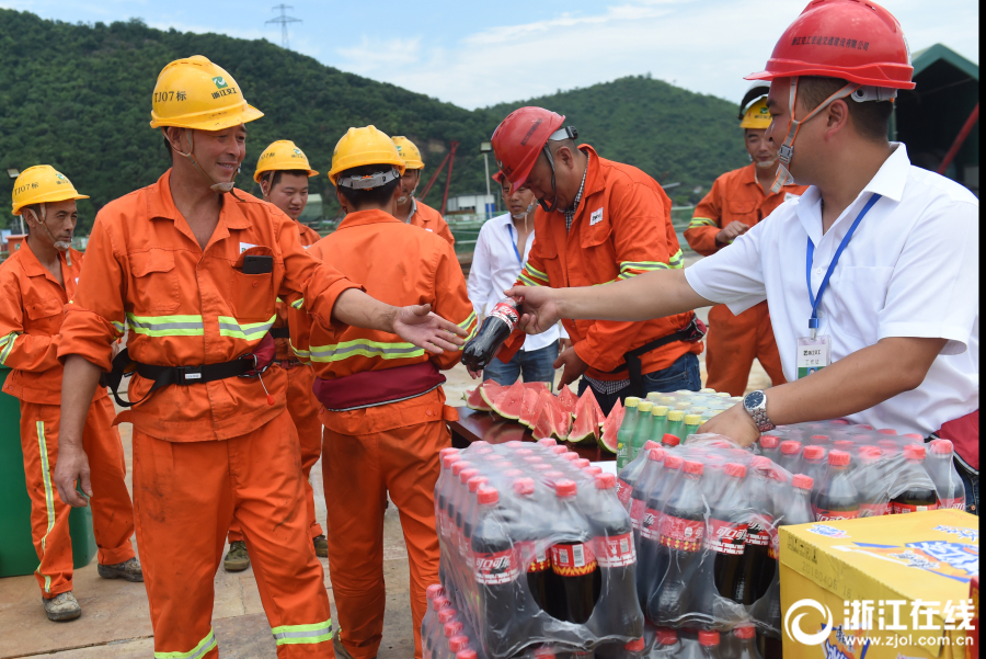 5月16日,杭州持續(xù)高溫,最高氣溫達(dá)37.5℃。在G25長(zhǎng)深高速德清至富陽(yáng)段擴(kuò)容工地,工人正在抓緊建設(shè)跨富春江大橋。承建施工項(xiàng)目的浙江交工宏途交通建設(shè)有限公司,為一線建設(shè)者送來(lái)了清涼用品和防暑藥品,慰問(wèn)高溫下作業(yè)的施工人員。(浙江在線記者 吳元峰 攝)