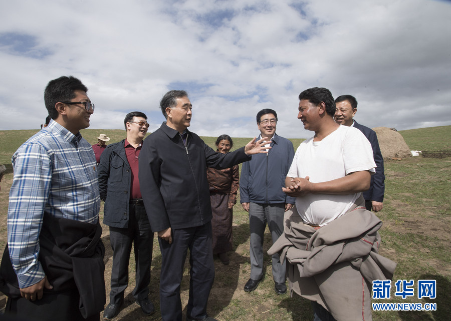 5月21日至23日,中共中央政治局常委、全國政協(xié)主席汪洋在甘肅甘南藏族自治州調(diào)研。這是5月22日,汪洋在夏河縣曼瑪村看望貧困牧民。新華社記者李學仁 攝