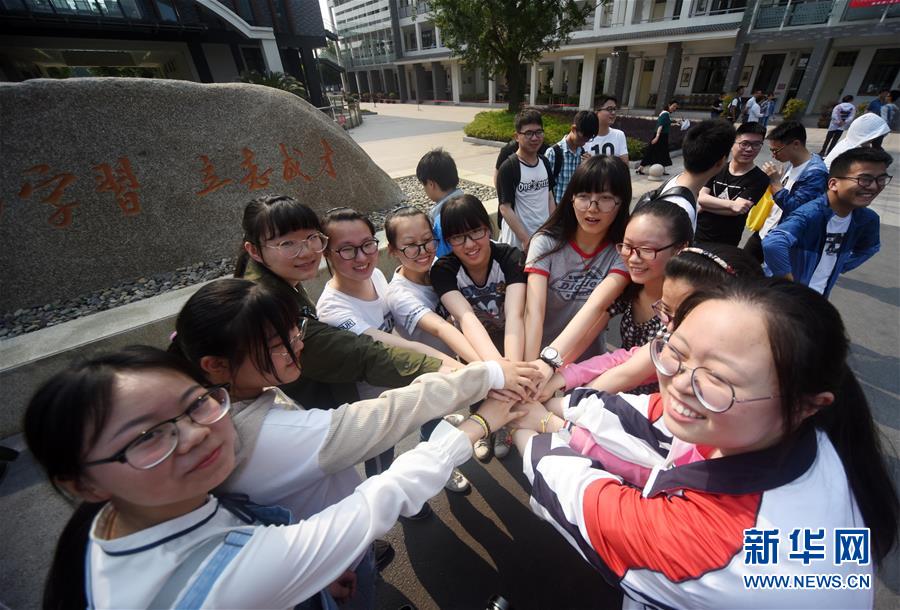 6月6日,在江蘇揚州大學附屬中學考點,考生為自己加油。高考臨近,各地考生積極調(diào)整心態(tài),迎接考試。 新華社發(fā)(司新利 攝)