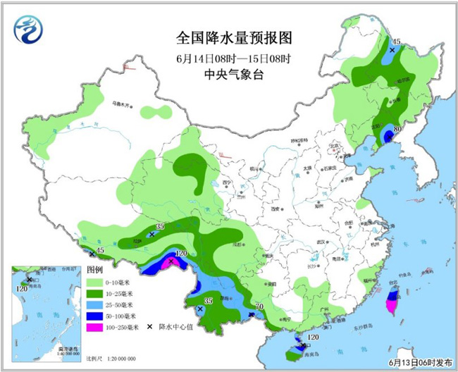張濤:由于雨帶南移,南方強(qiáng)降水范圍已經(jīng)減小,因此中央氣象臺(tái)13日6時(shí)解除暴雨藍(lán)色預(yù)警,但預(yù)計(jì)13日8時(shí)至14日8時(shí),廣東南部沿海、廣西南部、云南西部和東北部、西藏東南部、四川西部等地有大雨或暴雨(50~90毫米),部分地區(qū)并伴有短時(shí)強(qiáng)降水,局地有雷暴大風(fēng)和冰雹。14日以后,廣東、廣西地區(qū)降雨整體減弱,華南地區(qū)降雨主要集中在雷州半島沿海一帶和海南中北部地區(qū)以及南海北部海面上。可能出現(xiàn)伴有短時(shí)強(qiáng)降水、雷暴大風(fēng)或冰雹等強(qiáng)對(duì)流天氣。