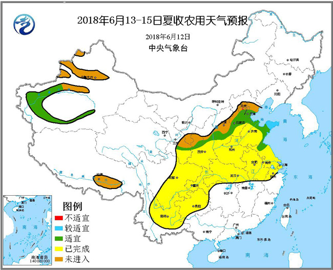張濤:從天氣預(yù)報(bào)來(lái)看,近期降雨主要集中在華北、東北以及黃淮部分地區(qū),且以分散的雷雨天氣為主,其他地區(qū)則以晴朗天氣為主,整體來(lái)說(shuō)對(duì)麥?zhǔn)沼绊懖淮?。但河北、山東等地需關(guān)注強(qiáng)對(duì)流天氣影響,關(guān)注最新的天氣預(yù)報(bào),防范雷雨大風(fēng)、冰雹等對(duì)小麥?zhǔn)諘竦挠绊?。此外,麥?zhǔn)諘r(shí)需避開雷陣雨時(shí)段,防范雷電和強(qiáng)對(duì)流天氣對(duì)麥?zhǔn)杖藛T安全造成的危害。