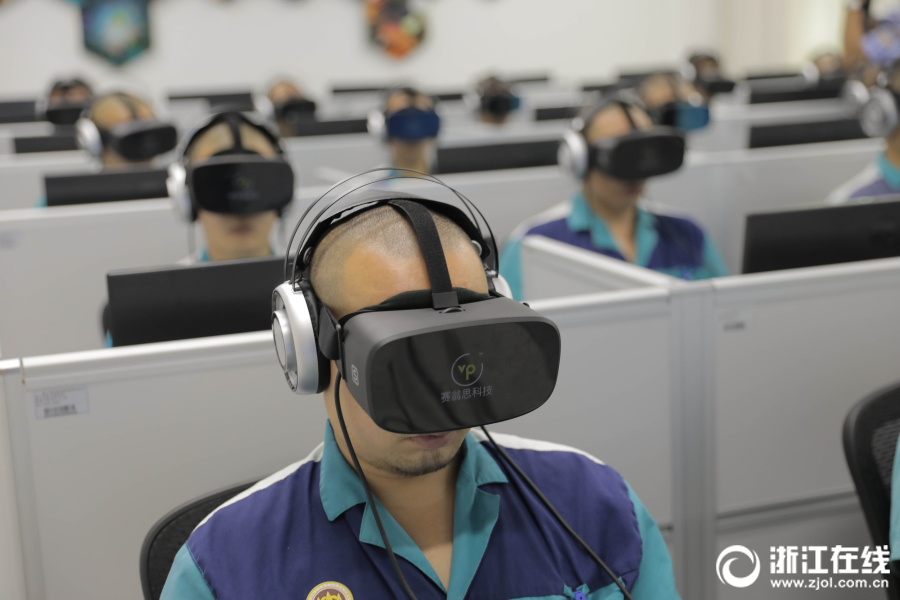 6月26日,浙江拱宸強(qiáng)制隔離戒毒所內(nèi),戒毒人員通過腦電技術(shù)和VR技術(shù)輔助戒毒。這些黑科技可以讓戒毒人員身臨其境地體會(huì)到吸毒的危害,從心理上減弱對毒品的依賴。(浙江在線記者 錢璐斌 徐文迪 攝)