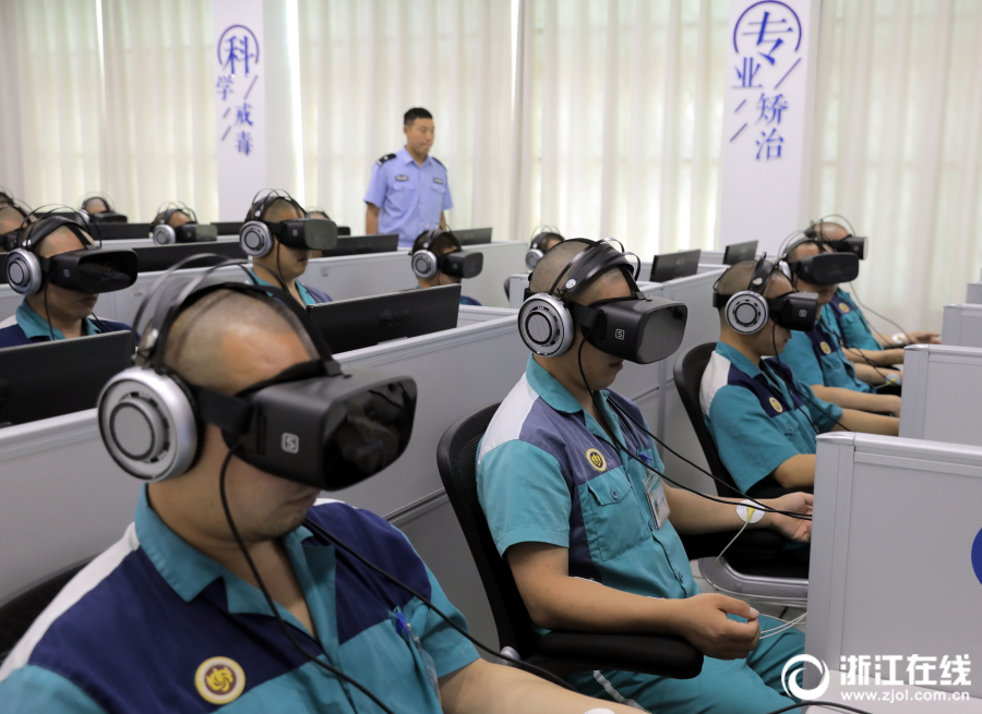 6月26日,浙江拱宸強制隔離戒毒所內(nèi),戒毒人員通過腦電技術(shù)和VR技術(shù)輔助戒毒。這些黑科技可以讓戒毒人員身臨其境地體會到吸毒的危害,從心理上減弱對毒品的依賴。(浙江在線記者 錢璐斌 徐文迪 攝)
