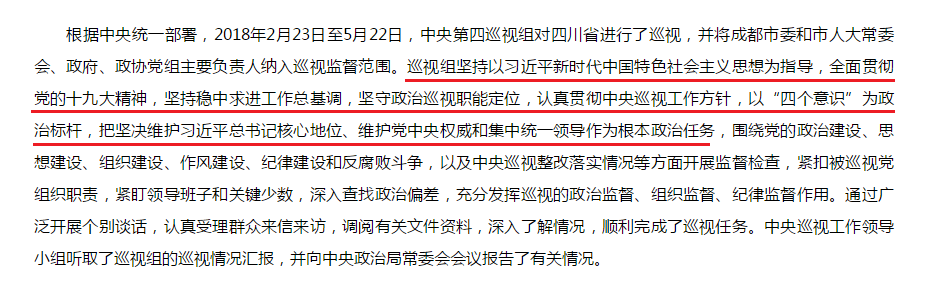 中央第四巡視組向四川省委反饋巡視情況,圖為中央紀委國家監(jiān)委網站發(fā)布消息部分截圖。