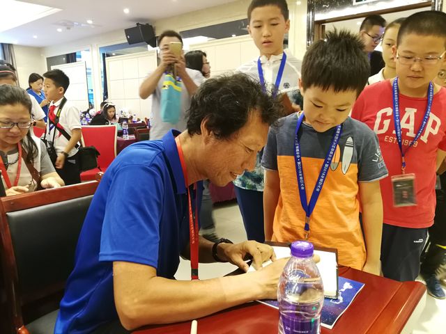 北京天文館館長(zhǎng)朱進(jìn)為小天文愛好者簽名留念(喻菲攝)
