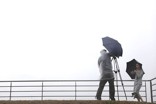 盛夏的南中國(guó)驕陽(yáng)似火,日平均氣溫35攝氏度以上,高溫預(yù)警、暴雨襲擊,常常是汗?jié)褚簧?、雨澆一身,采訪團(tuán)很多人還中暑、感冒,但仍然奮戰(zhàn)在采訪一線。8月12日在上海與臺(tái)風(fēng)“摩羯”正面交會(huì),但在長(zhǎng)江口水庫(kù)堤壩上做采訪和直播的記者們?nèi)耘f在狂風(fēng)暴雨中堅(jiān)持到底。