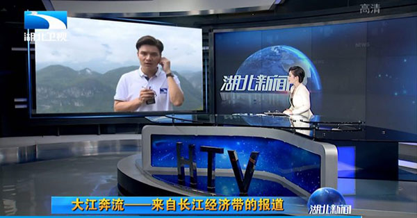 湖北廣播電視臺(tái)記者向昊在做連線直播。