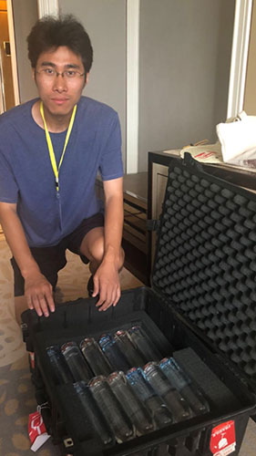 中央人民廣播電臺(tái)記者陳兆國(guó)和他們采集的長(zhǎng)江水。