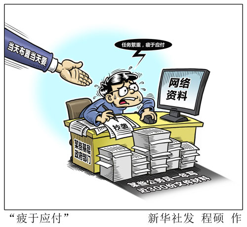 黨的十八大以來(lái),中央出臺(tái)“八項(xiàng)規(guī)定”全面整治“四風(fēng)”積弊,黨風(fēng)政風(fēng)為之一振。但是近一兩年,部分地方文山會(huì)海痼疾反彈回潮,大有卷土重來(lái)之勢(shì),基層黨員干部苦不堪言。