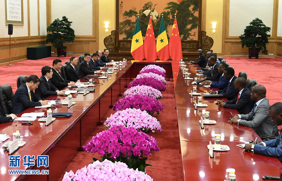 9月2日,國家主席習(xí)近平在北京人民大會(huì)堂會(huì)見塞內(nèi)加爾總統(tǒng)薩勒。 新華社記者 高潔 攝