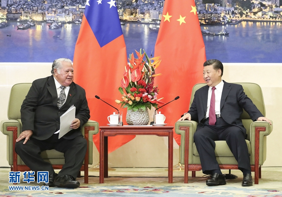 9月18日,國(guó)家主席習(xí)近平在北京人民大會(huì)堂會(huì)見(jiàn)來(lái)華出席夏季達(dá)沃斯論壇的薩摩亞總理圖伊拉埃帕。 新華社記者丁林?jǐn)z