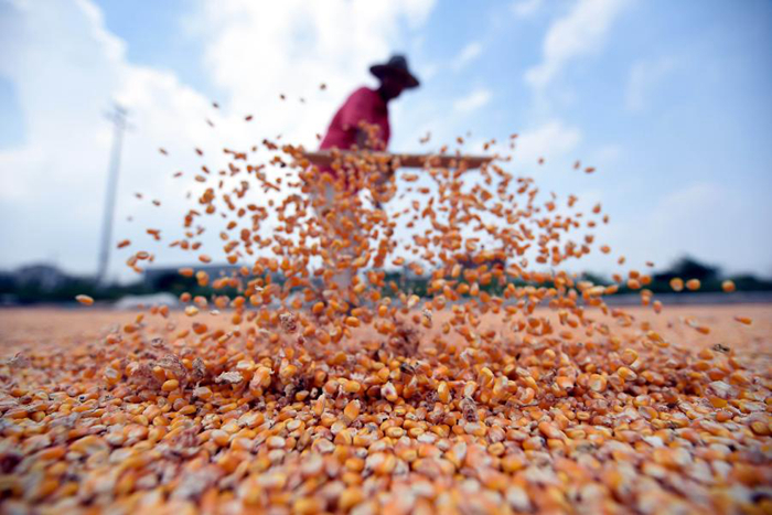 8月30日,山東省臨沂市郯城縣馬頭鎮(zhèn)農(nóng)民在晾曬玉米。新華社發(fā)(房德華 攝)